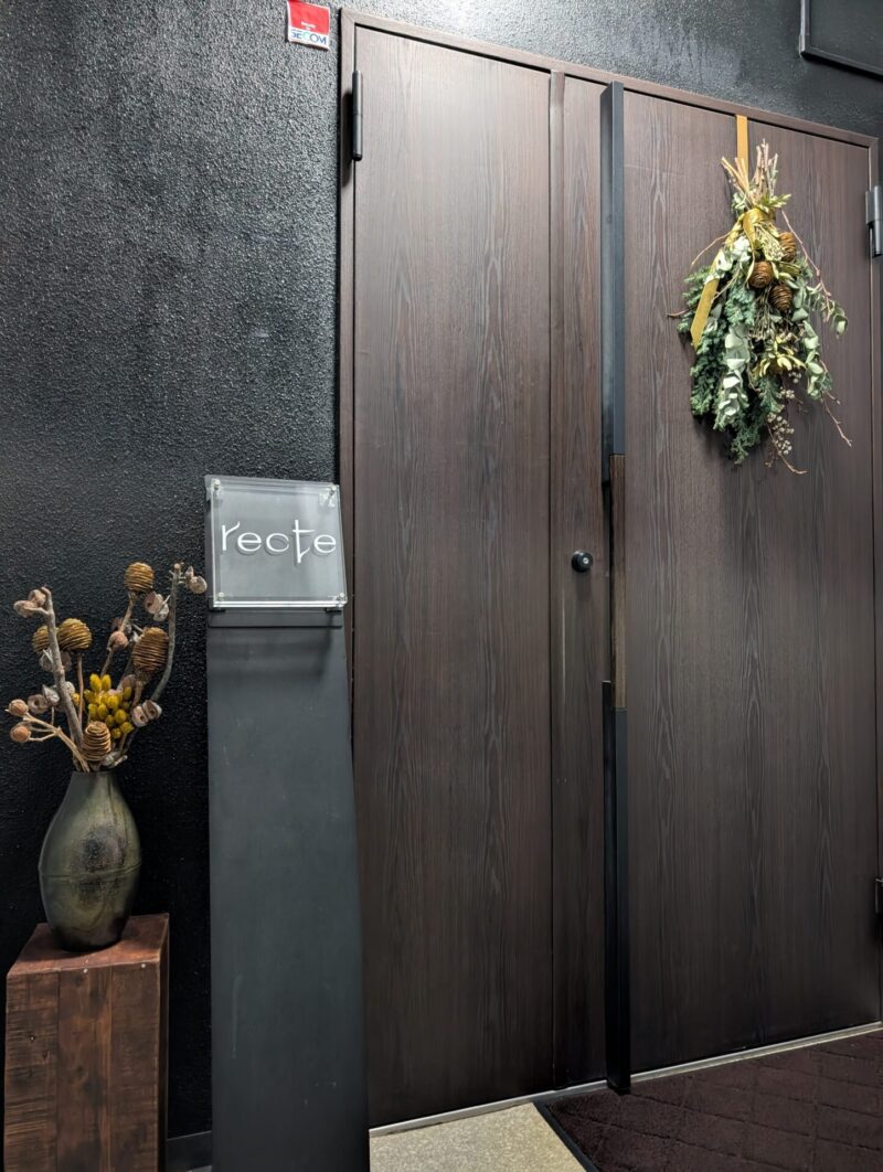 階段を上がると「recte」の店名が書かれたエントランスが見えました。